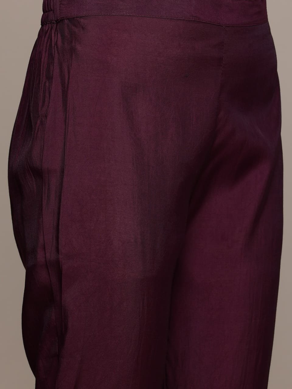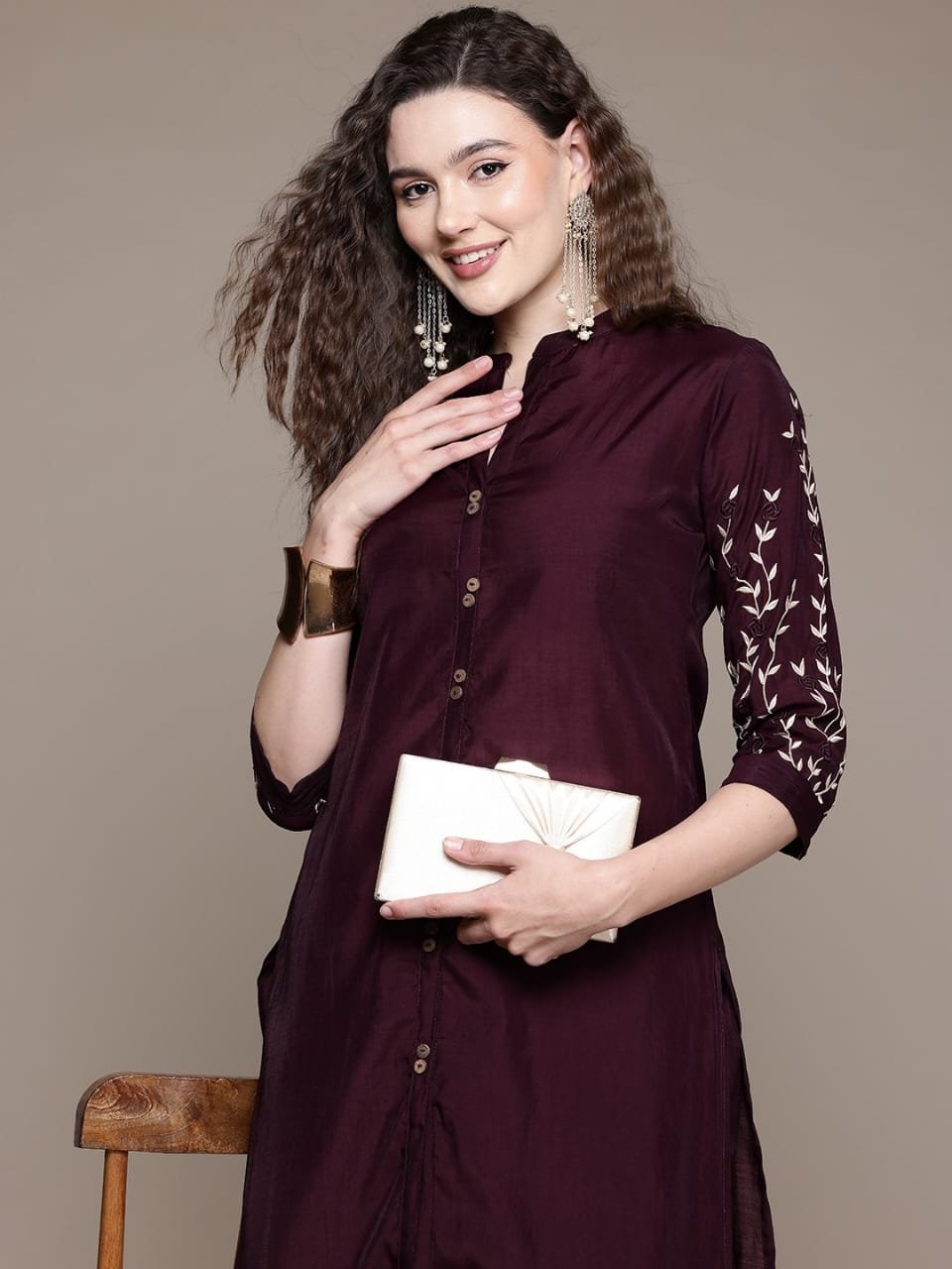 Deep Wine Minimal Embroidered Straight Kurta Set