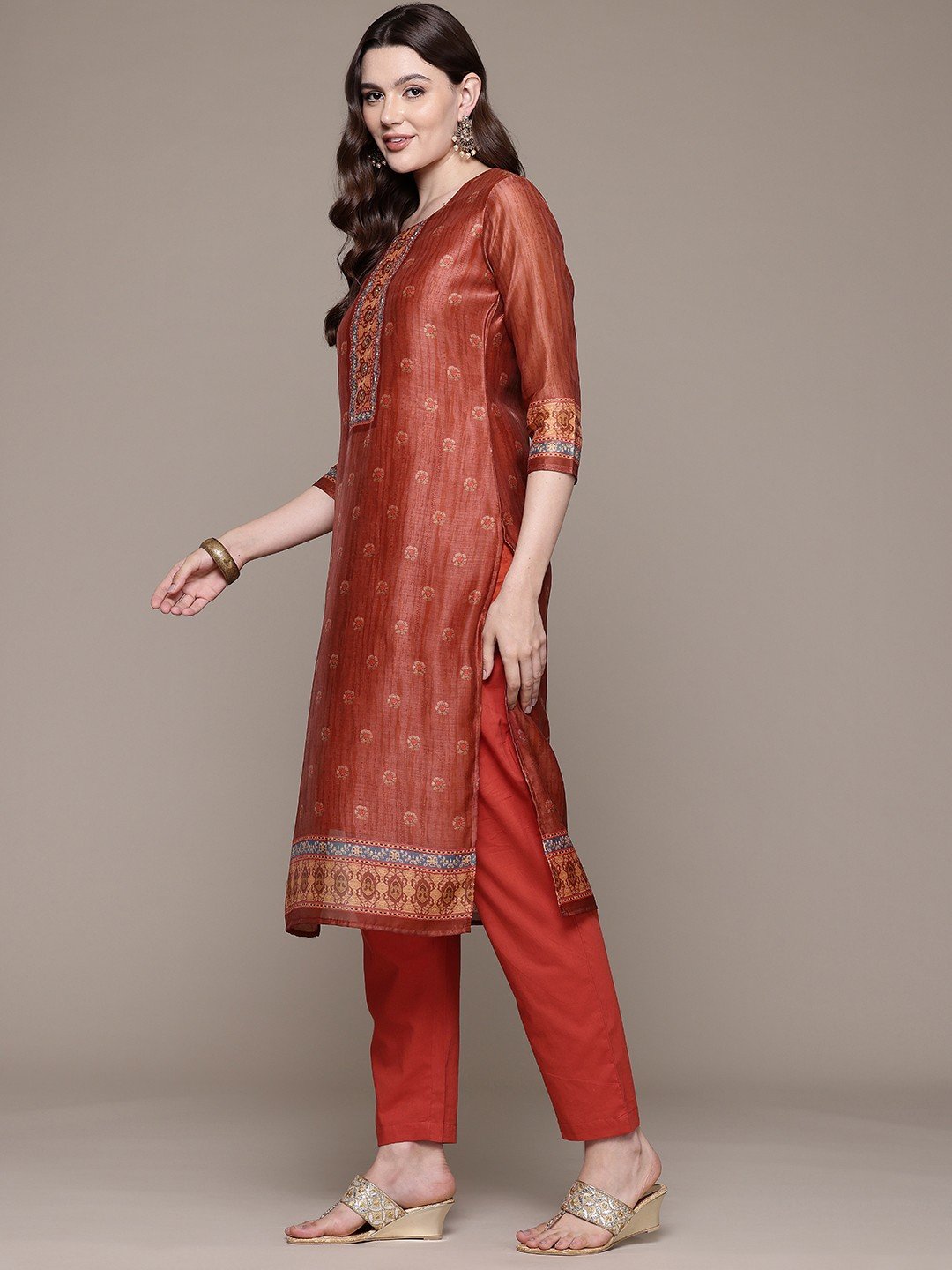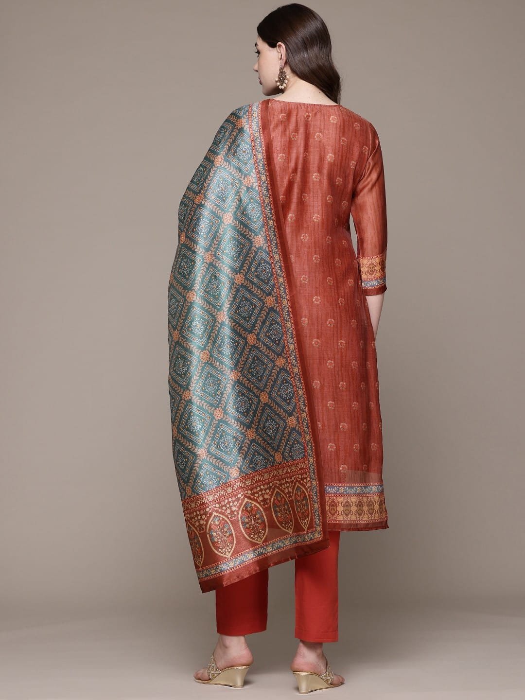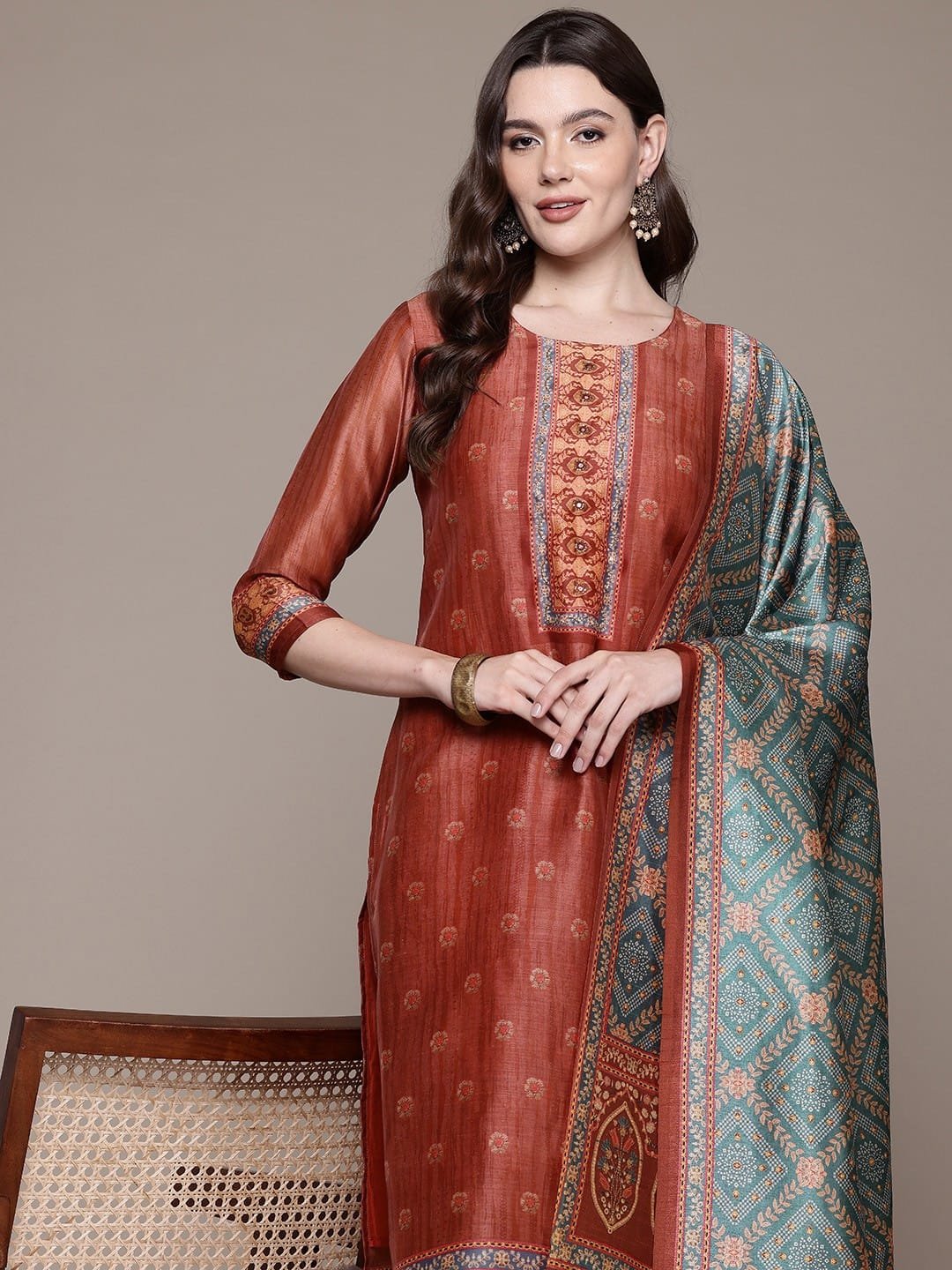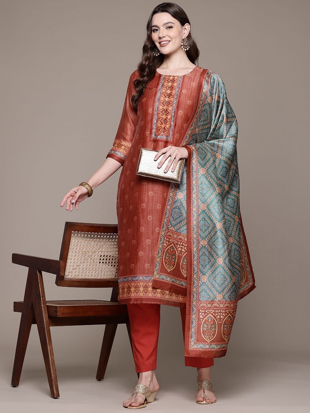 Elegant Silk Printed Suit